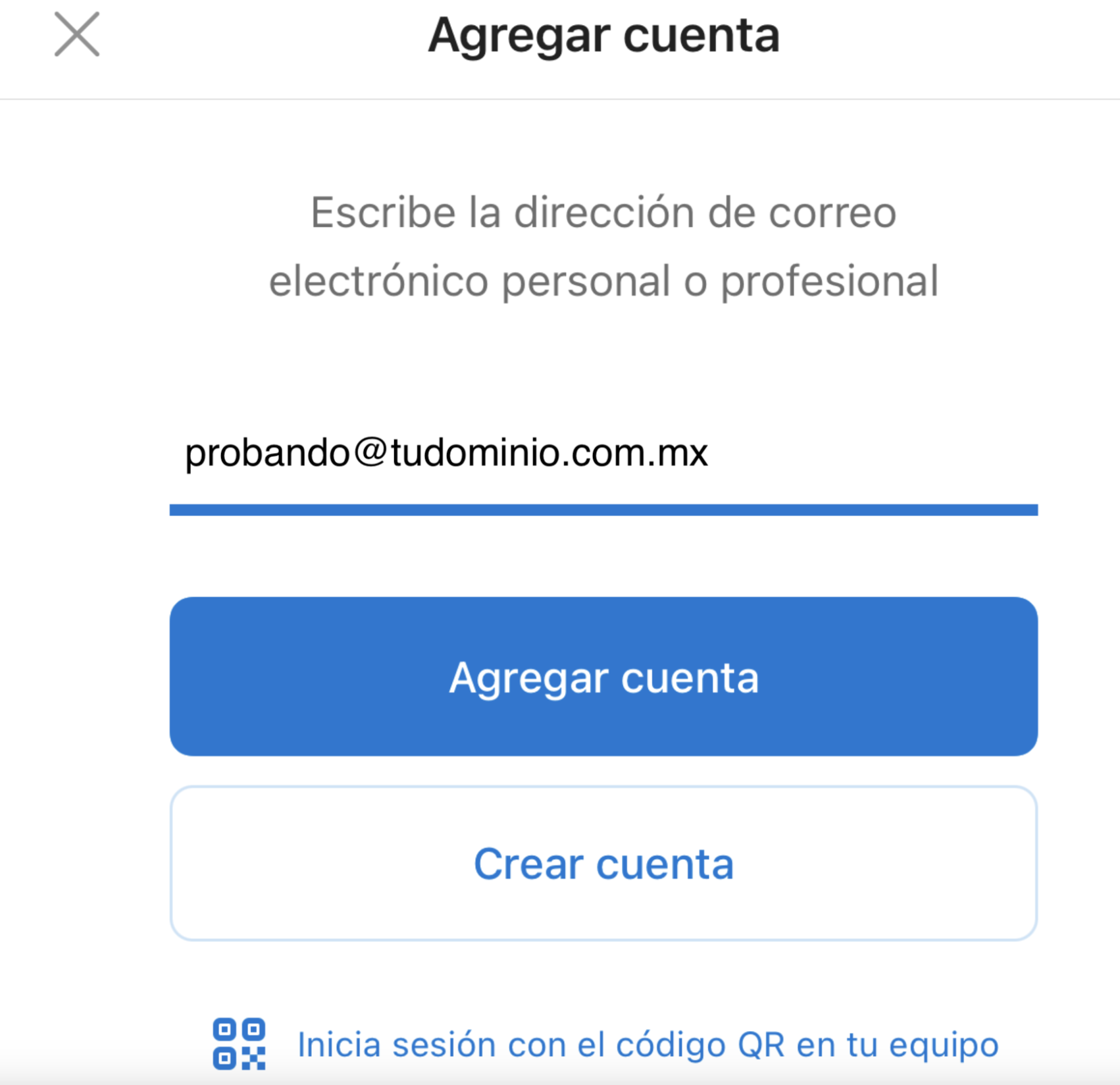 2. Haz clic en "Agregar cuenta" > "Cuenta de correo" y escribe tu correo electrónico.