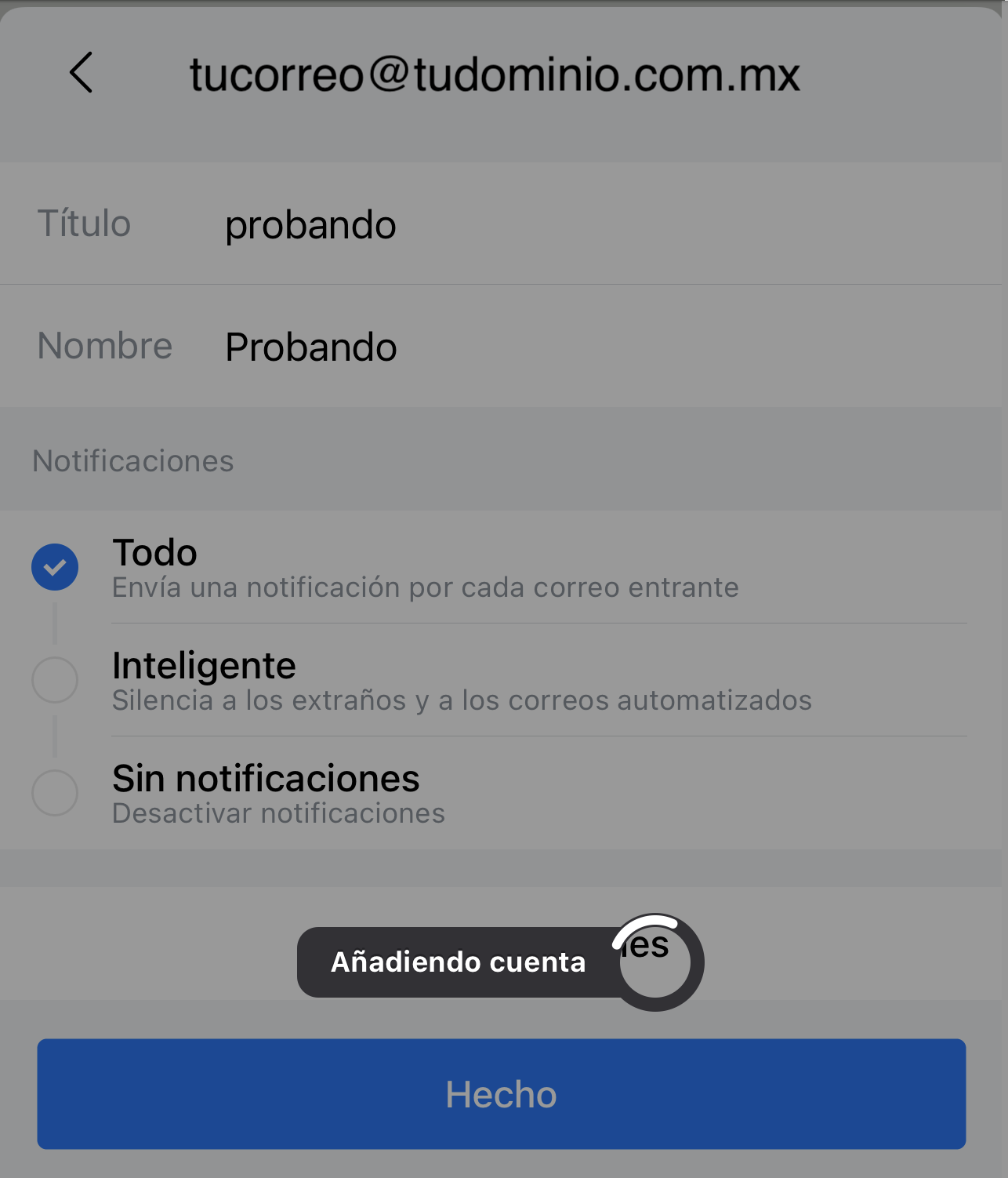 5. Finaliza el proceso ingresando tu nombre y seleccionando "Hecho".