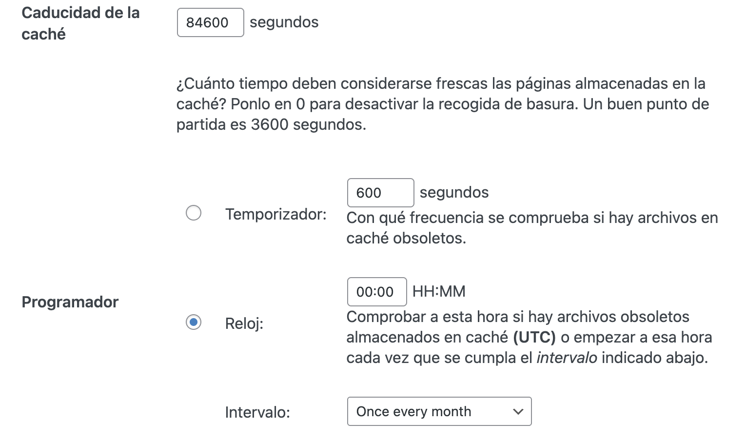 > Programar limpieza: 1 vez al mes a las 00:00.