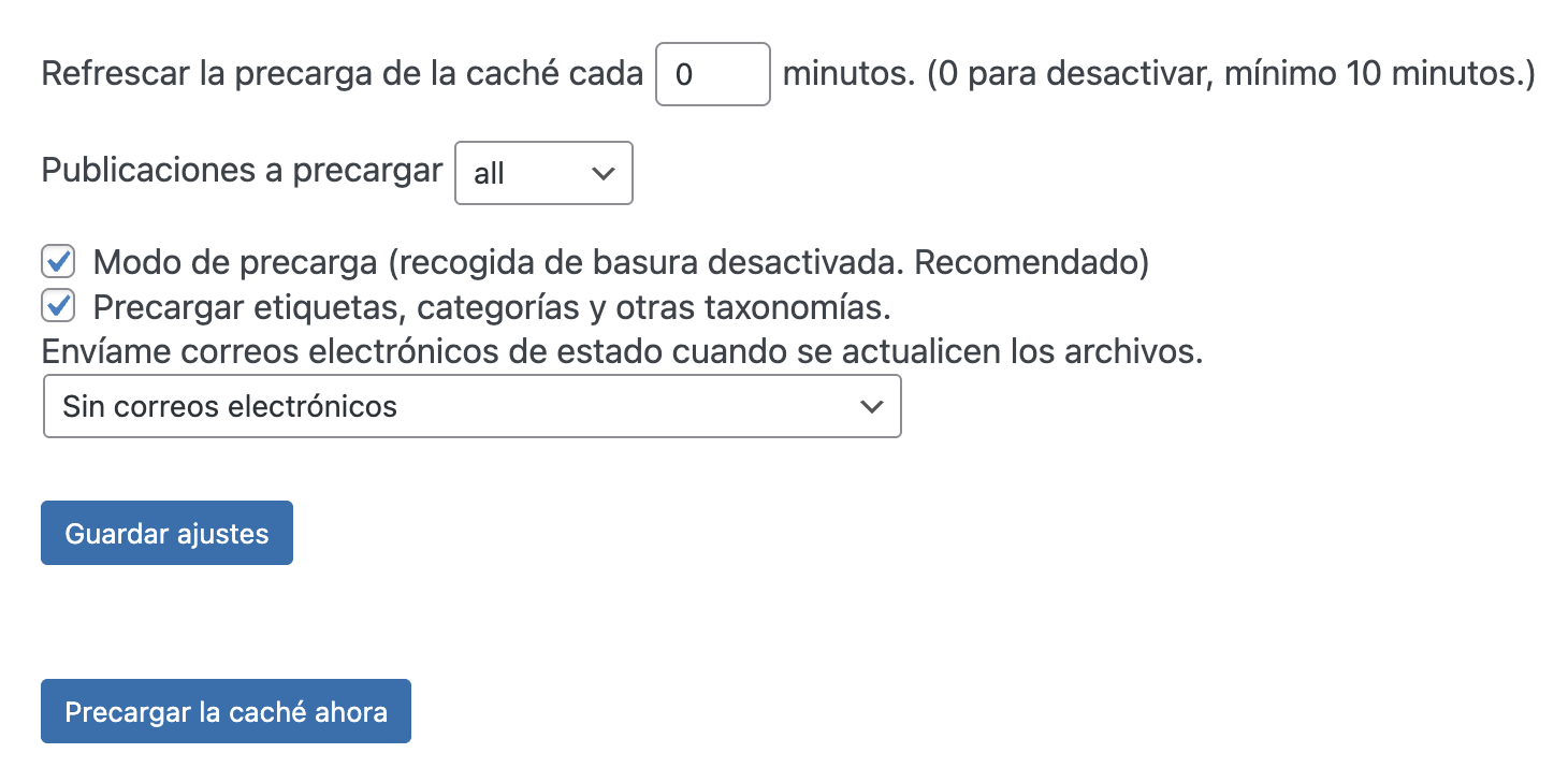 > Refrescar la precarga: 0 (desactivado, para evitar sobrecarga)
